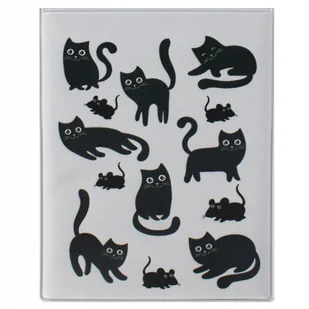Km Plastik Okładka na dokumenty ucznia pionowa Koty czarne. Zalety produktu Okładka na legitymacje szkolną z grafiką w czarne Koty wykonana z folii PVC, wewnątrz usztywniona tekturą posiada dwie koszulki, otwierana pionowo, zabezpiecza legitymację szkolną, kartę rowerową, obiadową czy bilet. . .