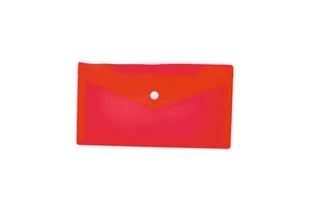 Plastikowa koperta zapinana na zatrzask. Wykonana z folii polipropylenowej. Półprzezroczysta. Rozmiar 22 x 12 cm (Dl). Kolor czerwony. Na dokumenty, bilety, paragony, notatki.