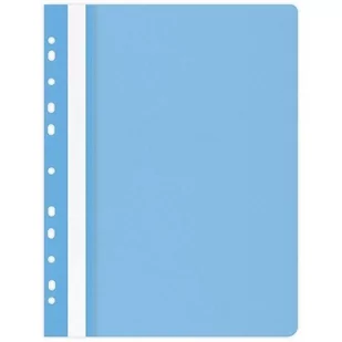 wykonany z polipropylenu strona przednia transparentna - grubość: 100um strona tylna kolorowa - grubość: 170um mieści ok. 200 kartek posiada 11 dziurek do wpięcia do segregatora wymienny, dwustronnie zapisywalny pasek brzegowy format: A4 rozmiar: 237x310mm kolor jasnoniebieski