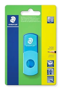 Staedtler 511SEF30BK pojemnik z gumką, neonowy turkus, bez ftalanów i lateksu, do długopisów w standardowym formacie, możliwość ponownego zamknięcia, temperówka 2 w 1 w blistrze