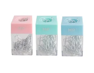 Cechy produktu: - zestaw 50 średniej wielkości spinaczy, - przezroczysty, plastikowy pojemnik umożliwiający łatwe przechowywanie, - wyposażony w magnetyczną powierzchnię zapobiegającą wysypaniu się spinaczy, - praktyczny i estetyczny sposób organizacji przestrzeni biurowej i domowej, - funkcjonalna ozdoba każdego biurka.