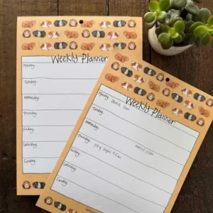 Planer w formacie A4. Na środku u góry posiada otwór, który pozwala na łatwe zawieszenie. Zawiera 60 arkuszy, jeden arkusz na każdy tydzień w roku i kilka zapasowych.