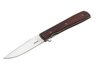 Nóż składany Boker Plus Urban Trapper Petite Cocobolo Nóż projektu Brada Zinkera. Odchudzona rękojeść, smukły profil i praktyczność, to cechy, które sprawiają, że Urban Trapper nadaje nożom EDC zupełnie nową jakość. Ostrze wykonane zostało z wysokiej jakości stali VG-10, stosunkowo łatwej do naostrzenia oraz mniej kruchej niż stal 154CM. Wysuwanie klingi ułatwia flipper oraz łożyskowana oś główna (IKBS). Głownia blokowana jest tytanową blokadą frame-lock.