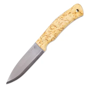 10 utrzymuje swoją popularność wśród miłośników outdooru, w tym kobiet. Dlaczego? Ponieważ jest to nóż, na który można polegać i który nie zawiedzie. To właściwie wszystko, czego można oczekiwać od noża! Wersja z rękojeścią z kręconego brzozy i ostrzem Sleipner oferuje ręcznie wykonaną, olejowaną rękojeść z kręconej brzozy o ergonomicznym designie, który zapewnia przyjemne i przyjazne uczucie naturalnego drewna. Z solidnym, 2 mm pochewką z kydexu europejskiej produkcji, która jest lekka, łatwa do czyszczenia i dostosowywalna. Ostrze wykonane z pierwszorzędnej stali Sleipner od szwedzkiej firmy Uddeholm sprawdziło się w trudnych warunkach, na przykład podczas rozłupywania drewna.