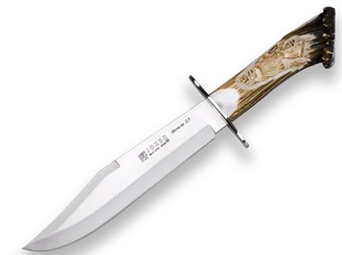 Solidny nóż BOWIE od marki JOKER to adaptacja ulubionego narzędzia outdoorowego, które sprawdziło się w wielu trudnych sytuacjach. Jest jasnym wyborem dla wspinaczy, myśliwych i poszukiwaczy przygód, którzy spędzają długie dni na dzikości i potrzebują mieć przy sobie niezawodny nóż. Ostrze wykonane jest ze stali nierdzewnej molibdenowo-wanadowej 1. 4116. Ochrona wykonana z tego samego materiału chroni palce przed zranieniem. Rękojeść ozdobiona wyrzeźbionym motywem wykonana jest z prawdziwego rogu.