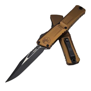 Combat Troodon Bowie Gen III Tan Aluminium, Black największy OTF z serii Troodon. Zbudowany z myślą o szerokim spektrum zastosowań użytkowych oraz do walki w zwarciu. Pracujący w trybie D/A wyposażony w piekielnie szybki mechanizm wysuwający ostrze.