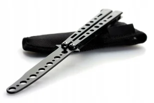 Oryginalny składany nóż typu butterfly. Nóż ma grubą, zaokrągloną i niezaostrzoną końcówkę dzięki czemu idealnie nadaje się do treningu. Oryginalne wzornictwo i doskonałe materiały wykonania. Wyróżnij się!!!