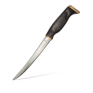 Nóż do filetowania Arctic Legend|Stal Nierdzewna|Czerniona Brzoza Karelska Arctic Legend Arctic Legend to fińska manufaktura pochodząca z dalekiej Laponii wytwarzająca tradycyjne fińskie noże Puukko. Firma zlokalizowana jest w Jakobstad a jej produkty to wytwarzane całkowicie ręcznie tradycyjne noże fińskie, narzędzia kempingowe i sprzęt wędkarski. Zaznaczyć należy, że narzędzia Arctic Legend wykonywane są tylko z naturalnych materiałów i przy użyciu tradycyjnych metod. Oznacza to, że nie ma dwóch takich samych noży, każdy jest inny i wyjątkowy nawet jeśli brać pod uwagę ten sam model. O prezentowanym nożu Stal i profil ostrza Nóż Arctic Legend Fillet Knife Stal Nierdzewna Czerniona Brzoza Karelska to nóż o konstrukcji rat tail tang.