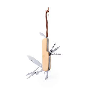 Nóż wielofunkcyjny, scyzoryk, 9 funkcji, bambusowy uchwyt