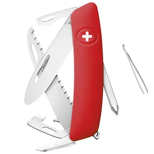 Ostrze z gładką krawędzią wykonane jest ze stali nierdzewnej 440, a jego zaokrąglony czubek zapewnia dodatkowe bezpieczeństwo. Ostrze można bezpiecznie zablokować po otwarciu i złożyć z powrotem poprzez proste naciśnięcie ikonicznego szwajcarskiego krzyża - znaku rozpoznawczego SWIZA. Lekko zakrzywiona czerwona plastikowa rękojeść ułatwia dzieciom dostęp do narzędzia, a powierzchnia antypoślizgowa zapewnia intuicyjne użytkowanie.