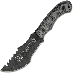 Tops Knives Tom Brown Tracker #4 Mini to mniejsza wersja pełnowymiarowego Tom Brown Tracker, jednak nadal wystarczająco duży, aby dobrze służyć w prawie każdej sytuacji. Praktyczny jako lekki nóż podczas wędrówki lub jako nóż zapasowy. Stała klinga typu Clip Point wykonana jest z pokrytej czarnym proszkiem stali węglowej 1095. To wytrzymały rodzaj stali, który łatwo naostrzyć do ostrza jak brzytwa, nawet przy ograniczonych zasobach. Chrbát čepele został wzbogacony o ząbkowania, aby można było używać go jako piły.