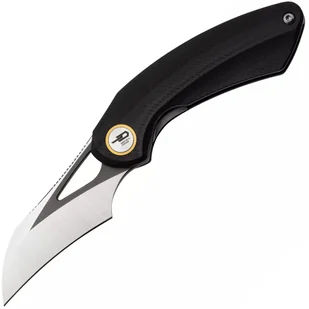 Bestech Bihai BG53A-2 to kompaktowy nóż kieszonkowy EDC o niewielkich wymiarach, zaprojektowany przez Ostapa Hela. Nóż charakteryzuje się charakterystycznym kształtem ostrza w stylu Hawkbill, który doskonale nadaje się do otwierania paczek lub cięcia liny i sznurów. Ostrze wykonane jest z wysokiej jakości stali Sandvik 14C28N, która łatwo się ostrzy. Na górze ostrza znajduje się obszerna zagłębienie na palec, co zapewnia doskonałą kontrolę nad nożem. Ostrze otwiera się za pomocą frontflippera, a dzięki łożyskom kulkowym ten proces jest niezwykle płynny.