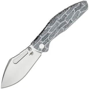 Składany nóż kieszonkowy Bestech Lockness BT2205B zaprojektowany przez Morgana Koensa, to doskonałe połączenie rozmiaru, wytrzymałości, szybkości i stylu, idealnie nadające się do codziennego noszenia. Szerokie ostrze typu Nessmuk z gładką krawędzią wykonane jest z nierdzewnej stali Sonewashed M390, która charakteryzuje się wyjątkowo wysoką odpornością na zużycie i wysoką odpornością na korozję. Ceramiczne łożyska kulkowe wspomagają otwieranie ostrza za pomocą podwójnego kołka na kciuk po obu stronach lub ząbkowanego oparcia na kciuk. Ostrze jest blokowane sprawdzonym i popularnym mechanizmem frame lock ze stalową wkładką. Rękojeść wykonana jest z wzoru "Damascus" G10 w kolorach białym i czarnym oraz tytanu.