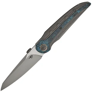 Ostrze ma wykończenie Bead Blasted i satin. Ceramiczne łożyska kulkowe wspomagają otwieranie ostrza za pomocą szybkiego front flippera lub dysku pod kciuk. Ostrze jest blokowane sprawdzonym i popularnym frame lockiem ze stalową wkładką. Rękojeść wykonana jest z ciemnego tytanu z wykończeniem bead blast i niebieską wkładką z carbon fiber. Jednopozycyjny, praworęczny tytanowy klips umożliwia noszenie noża w pozycji tip-up, z ostrzem skierowanym do góry.
