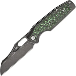 Rękojeść: Rękojeść wykonana jest z połączenia włókien węglowych (Carbon Fiber) i czarnego tytanu. Ta kombinacja materiałów nadaje nożowi nie tylko estetyczny wygląd, ale także wytrzymałość i odporność. Ergonomiczny kształt rękojeści zapewnia wygodny i pewny chwyt. Mechanizm blokady: Frame Lock to niezawodny mechanizm blokady, który zapewnia, że nóż pozostaje pewnie zablokowany podczas użytkowania.