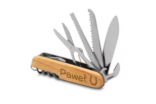 Duże ostrze Śrubokręt krzyżak Pilnik do paznokci Skrobak do ryb Piła do drewna Nożyczki Otwieracz do puszek Otwieracz do kapsli Szydło Korkociąg Dziurkacz