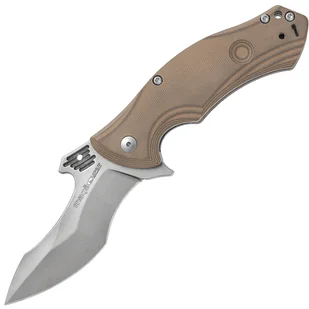 Otwieranie noża jest bardzo łatwe dzięki łożyskom kulkowym. Istnieją trzy sposoby otwarcia noża - płynny flipper, część chwytna na ostrzu działająca jako otwór na kciuk lub 'hak' na grzbiecie głowni. Ten hak zahacza się o krawędź kieszeni spodni, dzięki czemu ostrze automatycznie otwiera się, gdy wyciągasz nóż z kieszeni. Całość blokowana jest popularnym i solidnym Linerlockiem. Ergonomicznie ukształtowana rękojeść wykonana jest z piaskowego G10, który jest materiałem kompozytowym z włókna szklanego i żywicy syntetycznej.