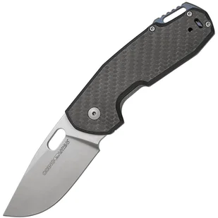 Nóż składany kieszonkowy Viper ODINO V5918FC zaprojektowany przez Jaspera Voxnaesa, to wyjątkowy nóż do codziennego użytku (EDC) lub zadań taktycznych. Głownia typu Clip Point z gładkim ostrzem i płaskim szlifem wykonana jest ze stali Stonewashed N69Co, co zapewnia dobrą trwałość krawędzi tnącej i doskonałą odporność na zużycie. System łożysk kulkowych wspomaga płynne otwieranie ostrza, które można otworzyć za pomocą otworu na kciuk. Mechanizm blokujący to bezpieczny i sprawdzony Frame Lock. Rękojeść z jednej strony wykonana jest z grubej warstwy czarnego carbon fiber (sprasowanego pod ciśnieniem z żywicą syntetyczną), a z drugiej strony z solidnego tytanu.