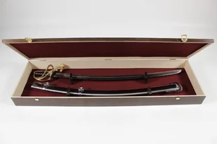 Replika szabli w pudełku, którą w 1917 roku Księżna Izabella Radziwiłł podarowała XII- emu Pułkowi Ułanów Podlaskich
