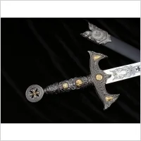 Rękojeść - metalowa bogato grawerowana symbolami związanymi z Zakonem Templariuszy