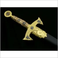 Rękojeść - metalowa bogato grawerowana symbolami związanymi z Zakonem Templariuszy
