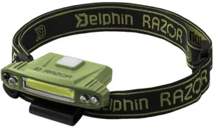 Delphin RAZOR USB to praktyczna lampka czołowa LED z wbudowanym akumulatorem litowo-jonowym 500 mAh w kolorze zielonym. Ze względu na niewielką wagę można ją również przymocować do czapki. Lampka jest wyposażona w czujnik ruchu i funkcję pamięci, która utrzymuje intensywność i kolor światła. Lampka zapewnia dwie intensywności białego światła i jest również wyposażona w dwie czerwone diody LED. Po pierwszym naciśnięciu przycisku dostępna będzie wydajność 30% przez 8 godzin.