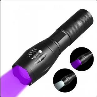Latarka z dwiema diodami LED o zmiennej ostrości: Dzięki regulowanej ostrości, która pasuje do różnych sytuacji (wystarczy pociągnąć głowicę latarki, aby dostosować ostrość), ta latarka UV pozwala wybrać ostrość między światłem punktowym a rozproszonym. Reflektory punktowe można stosować do obserwacji z dużej odległości, a reflektory rozproszone do oświetlenia dużego obszaru, wymagając tylko jednego trybu oświetlenia.