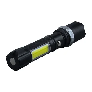 Ultrajasna: Ta latarka wykorzystuje wysokowydajny chip LED Cree L2, wysokiej jakości płytkę drukowaną i galwanizowaną aluminiową obudowę, zapewniając maksymalną jasność 600 lumenów i zasięg do 200 metrów. 3 regulowane tryby oświetlenia: Wystarczy ustawić wiązkę światła na światło przednie lub punktowe. Dzięki zaledwie 4 trybom oświetlenia (góra/dół/stroboskop/światło boczne COB), przełączanie między trybami jest łatwe, co zapewnia optymalne wrażenia użytkownika.