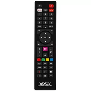 Pilot do TV TCL i Thomson Vayox VA0143 Funkcje specjalne Pilot Vayox VA0143 to doskonałe urządzenie, które umożliwi Ci łatwe sterowanie Twoim telewizorem TCL lub Thomson. Produkt wyposażony jest w ergonomiczne przyciski do aplikacji, dzięki czemu korzystanie z multimedialnych funkcji telewizora stanie się jeszcze prostsze. Nie musisz się martwić o skomplikowane procesy instalacji - pilot nie wymaga programowania. Do działania, urządzenie wykorzystuje dwa baterie typu AAA. Pilot uniwersalny Vayox VA0143 to gwarancja wygody i funkcjonalności w jednym.
