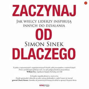 "Zaczynaj od DLACZEGO jest jedną z najważniejszych i najużyteczniejszych książek, jakie przeczytałem w ostatnich latach. Prosto i przekonująco pokazuje nam, na czym polega prawdziwe przywództwo". William Ury, współautor książki Getting to Yes "Książka Zaczynaj od DLACZEGO rozpaliła płomień w moim sercu. Potrafi zaprowadzić człowieka na takie wyżyny doskonałości, o jakich nawet nie marzył". generał Chuck Horner, dowódca sił powietrznych biorących udział w operacji Pustynna Burza "Każdy przytoczony przykład zmusza do spojrzenia na świat z zupełnie innej perspektywy.