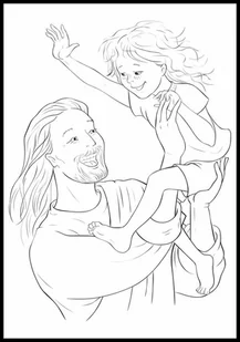 Kolorowanka w formie plakatu dla dzieci i nie tylko, z piękną grafiką, Jezus trzymający dziecko