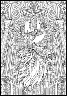 Duża kolorowanka z wieloma szczegółami z czarodziejką lewitującą w katedrze. Do plakatu nie jest dołączona ramka. Kolorowankę można zastosować jako plakat na...