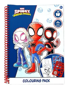 Kolorowanka z naklejkami i szablonami. Bohater: Marvel Spidey 48 arkuszy do kolorowania Arkusz z szablonami Arkusz naklejek Certyfikaty i ostrzeżenie bezpiec...