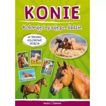 Książeczka zawiera duże kolorowe zdjęcia koni, ilustracje do pokolorowania oraz ćwiczenia grafomotoryczne przygotowujące do nauki pisania (szlaczki, poprawianie konturów, rysowanie po śladzie). Dziecko, wykonując ćwiczenia grafomotoryczne, trenuje sprawność dłoni i palców oraz rozwija koordynację wzrokowo-ruchową.