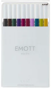 Ilość na paczkę: 10 szt. Kolory długopisu: Niebieski, Brązowy, Zielony, Szary, Fioletowy, Czerwony, Fioletowy, ŻółtyKolor produktu: Różne koloryRodzaj atramentu: Atrament na bazie wody Uni-Ball Emott.