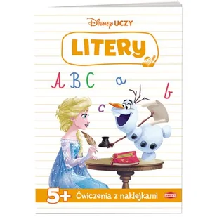 Książka powstała w ramach programu ,,Disney uczy" i jest dedykowana pięciolatkom. Podczas rozwiązywania zadań dziecko ćwiczy pisanie liter po śladzie, doskonaląc w ten sposób sprawność manualną i opanowując technikę trzymania ołówka. Dodatkowo mały uczeń poznaje alfabet oraz uczy się rozróżniać małe i wielkie litery. W książce, oprócz różnorodnych ćwiczeń związanych z literami, znajdują się także ciekawe zadania wzbogacające słownictwo. W zajęciach dzieciom towarzyszą ulubieni bohaterowie, a dodatkową atrakcją są naklejki, które można wykorzystać w zadaniach.