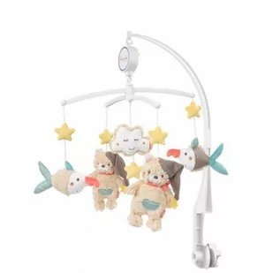 Karuzela z pozytywką, z kolekcji: Bruno. Uroczy miś Bruno i jego przyjaciele, Rybka Piła i Śpiąca Chmurka wyruszyli ,by zabrać Twojego maluszka do krainy snów. Mechaniczna pozytywka pozwala postaciom tańczyć i łagodnie uspokaja w rytmie popularnej kołysanki. W ciągu dnia tańczące misie oraz przytulanki w kształcie rybki i chmurki budzą ciekawość i zapraszają do słuchania, oglądania i podziwiania. Delikatne kolory i różnorodne powierzchnie stymulują percepcję dziecka.