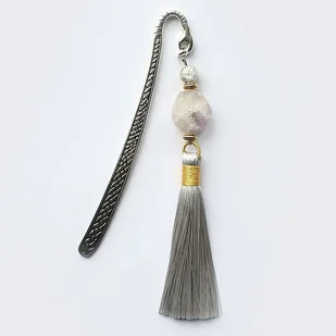 Elegancka etno zakładka do książki w odcieniu srebrna i złota z plastrem surowego agatu. Agat szary to kamień aktualizacji potencjału. Doskonały prezent dla osób spod znaku Panny i Wodnika oraz dla tych, k ...