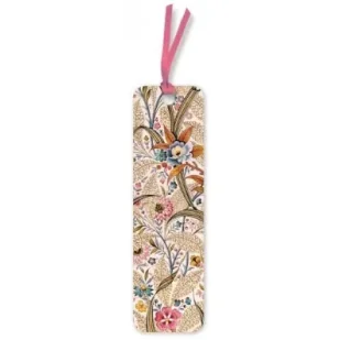 Pozłacana, papierowa zakładka do książki z ozdobną wstążką.