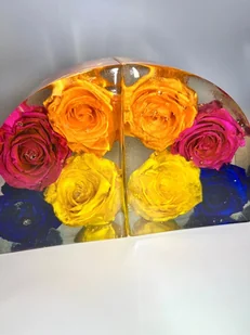 Wazonik dekoracyjno-użytkowy wykonany z żywicy epoksydowej w czterech pastelowych kolorach z lekko mieniaca sie struktura ,widoczne na foto kiedy pada na przedmiot swiatło Bardzo kolorowa i ni ...