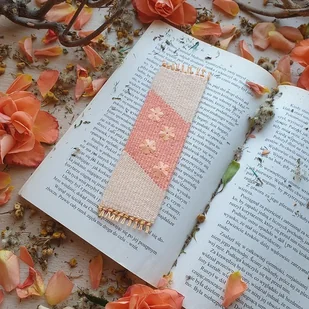 Ta ręcznie tkana zakładka to wyjątkowe połączenie elegancji i subtelnego uroku. Wykonana z najwyższą starannością, zakładka łączy dwa odcienie brzoskwiniowego koloru. Jasne i ciemniejsze brzoskwinio ...