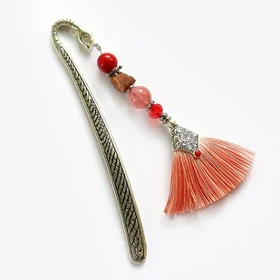 Elegancka etno zakładka do książki w niezwykłym odcieniu różu arbuzowego, z turmalinem arbuzowym i koralem czerwonym. Turmalin arbuzowy to tolerancji. Pomaga uzyskać dostęp i odblokować najgłębsze części Ser ...