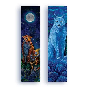 Zakładka kartonowa - Pieśń Zorzy. Gadżet. Dwa piękne obrazy Rocha Urbaniaka teraz na wyjątkowej zakładce! Dla efektu metaliczno-srebrny połysk! Karton ozdobny perłowy 300g, sztywny, metaliczno-srebrny połysk Wymiary: 50x200mm