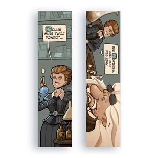 Zakładka kartonowa - Skłodowska-Curie. Maria Skłodowska-Curie w pełnym blasku naukowego geniuszu! Zakładka dla tych, którzy z książkami lubią eksperymentować i nigdy nie tracą ciekawości świata Karton ozdobny perłowy 300g, sztywny, metaliczno-srebrny połysk Wymiary: 50x200mm