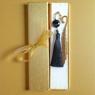 Pomysł na wyjątkowy PREZENT ;-) Przedstawiam wyjątkową zakładkę z nowej, limitowanej kolekcji: Fasetowany czarny agat ok.18mm, HEMATYT złoty, okazały chwost w kolorze czarnym, metal w kolorze złota (baza), ...