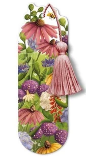 Złocona zakładka wykonana z grubego kartonu ozdobiona kolorowym chwostem.