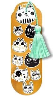 Złocona zakładka wykonana z grubego kartonu ozdobiona kolorowym chwostem.