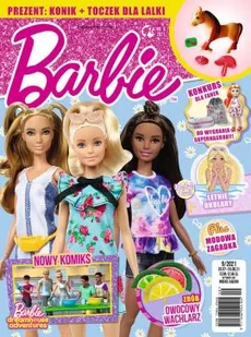 Barbie to najbardziej znana lalka na świecie. Zabawa z nią pomaga dziewczynkom rozwijać wyobraźnię głównie dzięki wcielaniu się w rozmaite role. Barbie weterynarz, baletnica, projektantka lub piosenkarka, wszystkie je znaleźć można na łamach magazynu, a małe czytelniczki mogą tu kolorować babeczki, projektować sukienki, rozwiązywać labirynty ze zwierzakami i śledzić przygody Barbie w krótkich opowiadaniach… Wymarzona zabawa! W tym numerze: Impreza przy basenie Zaplanuj letnie przyjęcie Rowerowe przygody Komiks: Barbie ma dzień wolny Zrób: