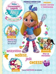 Mała Alicja otrzymuje zaczarowaną książkę kucharską swojej prababci i wkracza w magiczny świat gotowania. Jej przyjaciele zawsze gotowi na podanie pomocnej łyżki, uczą się dzielić i odkrywają wspólnie, jak jedzenie łączy ludzi. Słodka zabawa w krainie czarów kręci się wokół pysznych wypieków i na przyjęciach z herbatką, dlatego nie zabraknie tu przepisów na ciastka, łamigłówek z tortami ani historyjek o serniczkach dla królowej kier. Magazyn przygotowany dla dzieci w wieku przedszkolnym, oprawiony bajeczną grafiką, nawiązujący do serialu telewizyjnego kanału Disney Junior oraz platformy Disney+. Skierowany do dzieci w wieku od 3 lat.