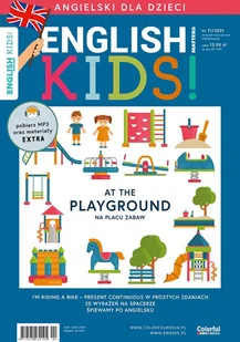 iść, gryźć, zostać, zapukać, mówić, dzwonić,spać, oglądać telewizję• nazwać w języku angielskim sprzęty i przedmioty na placu zabaw: zjeżdżalnia, piaskownica, huśtawka, huśtawka równoważna, wiaderko,grabki, piłka, trampolina, karuzela, ścianka wspinaczkowa, lina, linowapiramida wspinaczkowa• opowiedzieć o czynnościach wykonywanych na podwórku: jazda narowerze, jazda na hulajnodze, wspinanie się, budowanie zamków z piasku,jazda na rolkach, zabawa w chowanego, huśtanie się na huśtawce, skakaniena skakance, robienie gwiazdy, bieganie, granie w piłkę nożną• policzyć do 20• podać znaczenie następujących rzeczowników: finger, door, milk, day, bell,ring, brother Pobierz MP3 oraz materiały EXTRA! Zachęcamy do odwiedzenia strony magazynu www. emkids. pl, gdzie znajdują się dodatkowe materiały (np. kolorowanki do wydrukowania)oraz nagrania MP3.